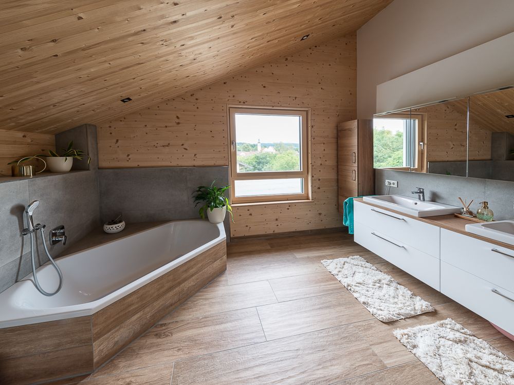 - Massivholzdach mit Aufdachstuhl