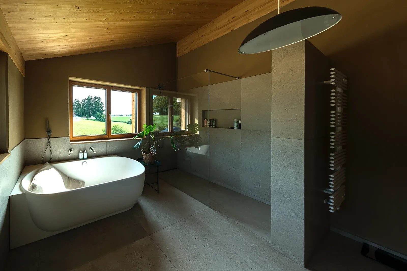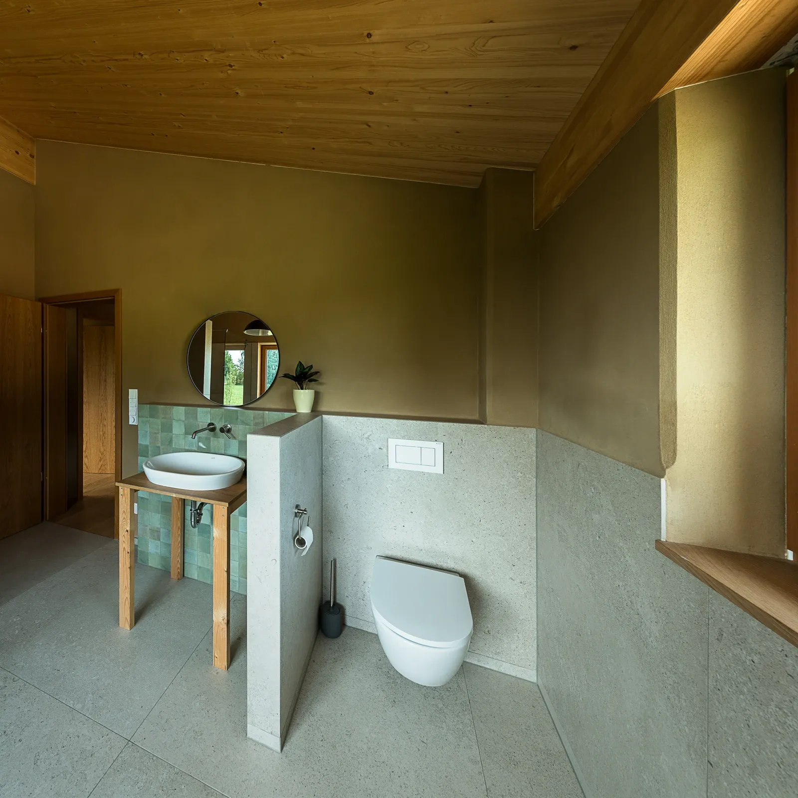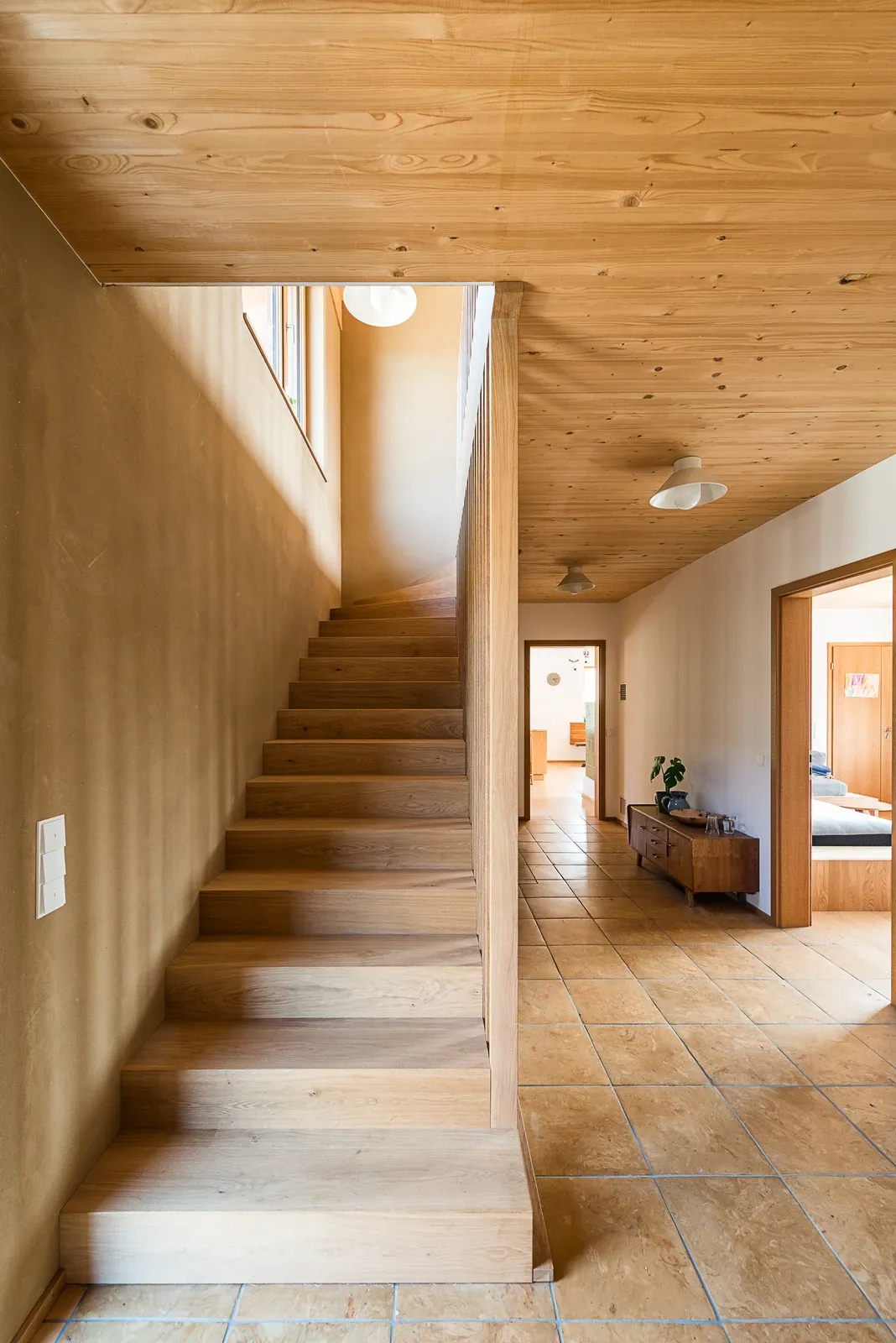- Lehmputz, 200 mm Massivholzwand und 160 mm Holzfaser-Dämmung