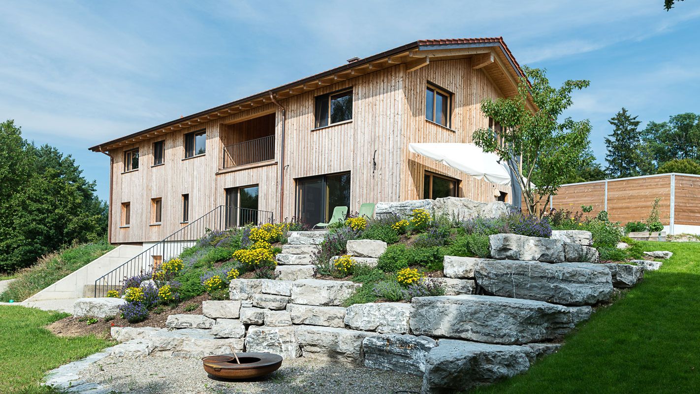 - vorgehängte Lärchen Holzfassade