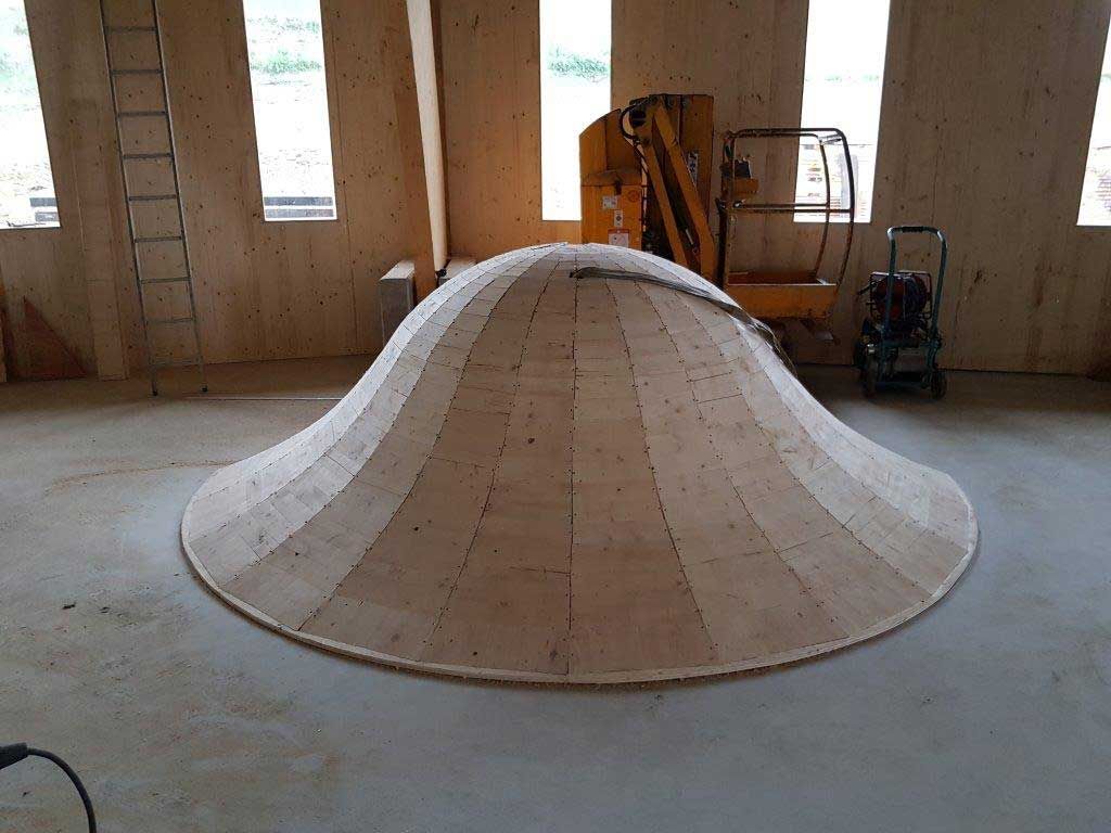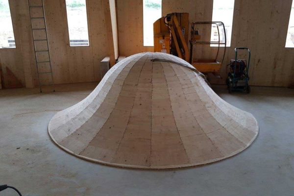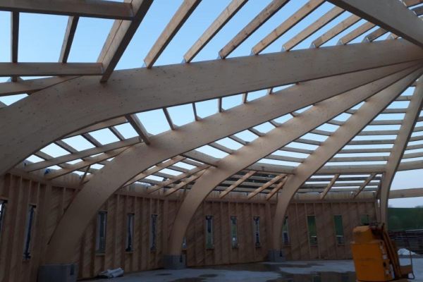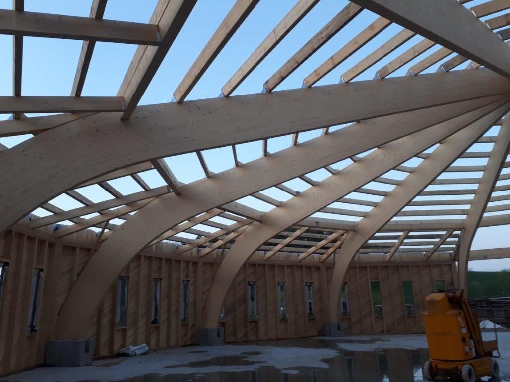 - 12 Eck Abbund-Halle mit Leimbindern und Koppelpfetten Dach aus Sandwichelementen