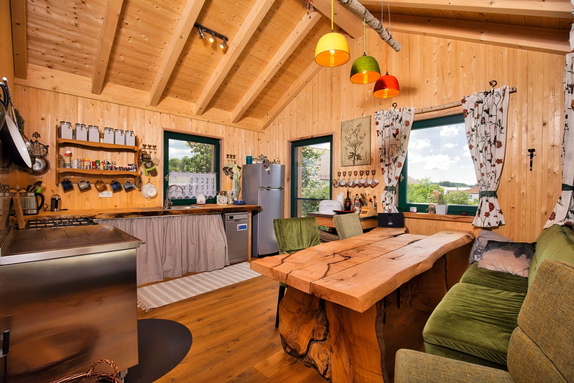 - Innenwände aus Massivholz mit Fermacellbeplankung