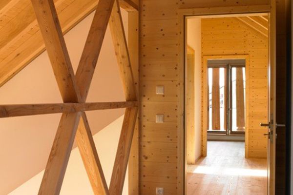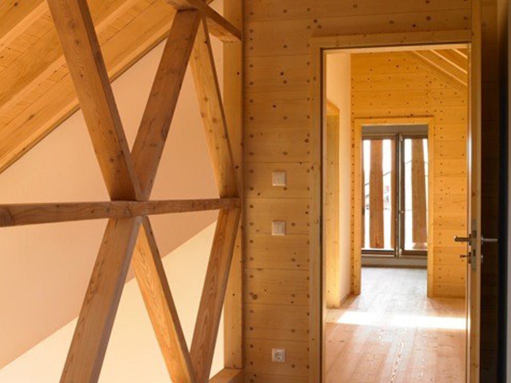 - Innenwände aus Thoma Holz100-Wänden, teilweise mit Lehmputz