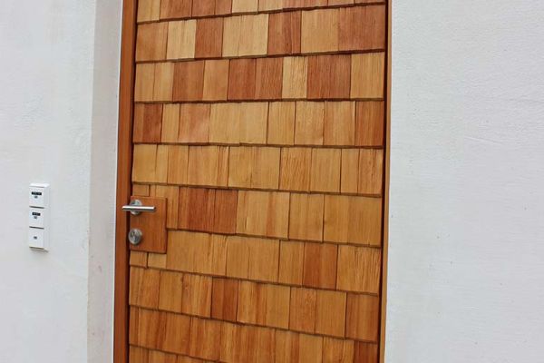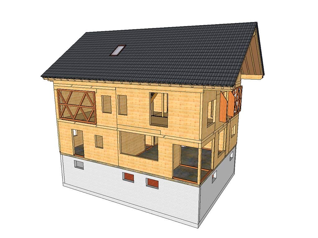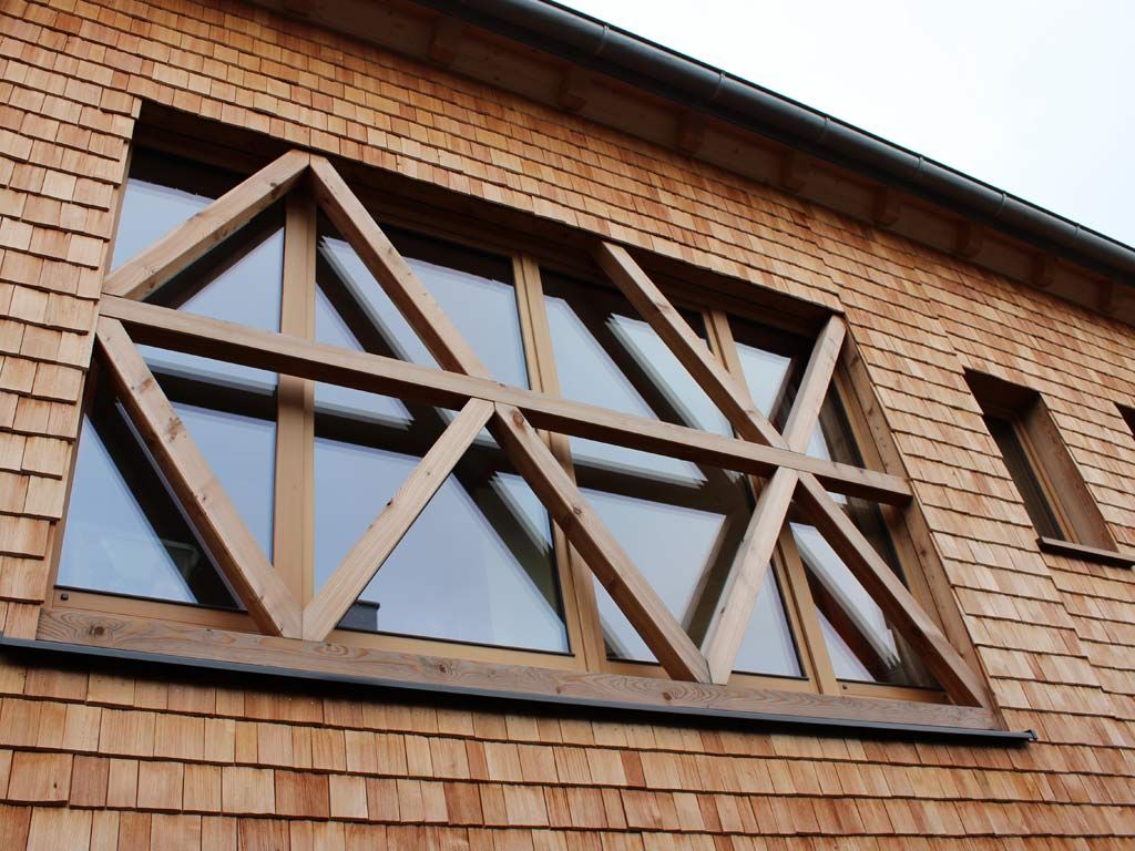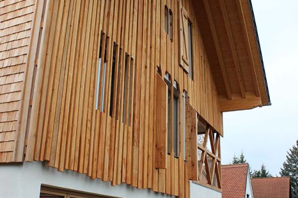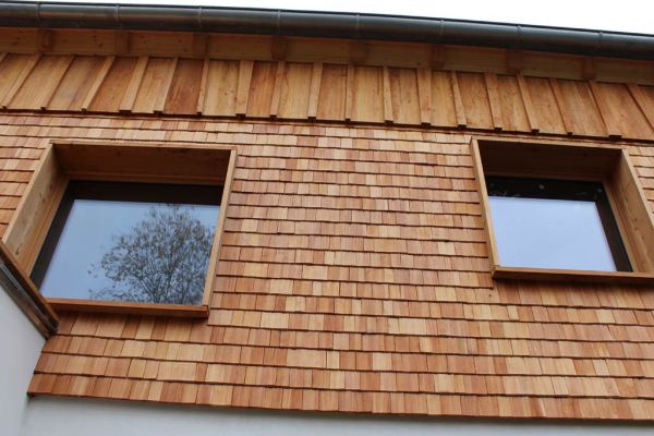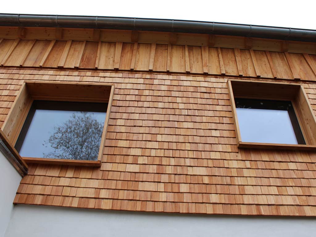 - 17er Thoma Holz100 Außenwand mit 12 cm Holzfaserdämmung und Holzschalungen (Schindeln, Boden, Decke) und Putz