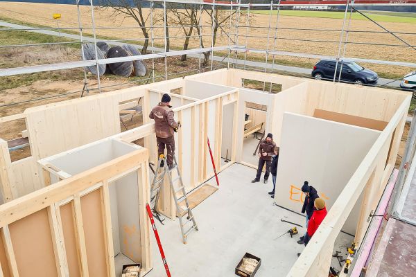 - Nach Freigabe und Baugenehmigung beginnt die Produktion deiner individuellen Massivholzwände. Nach Fertigstellung aller Bestandteile starten wir die Montage auf deinem Grundstück.
