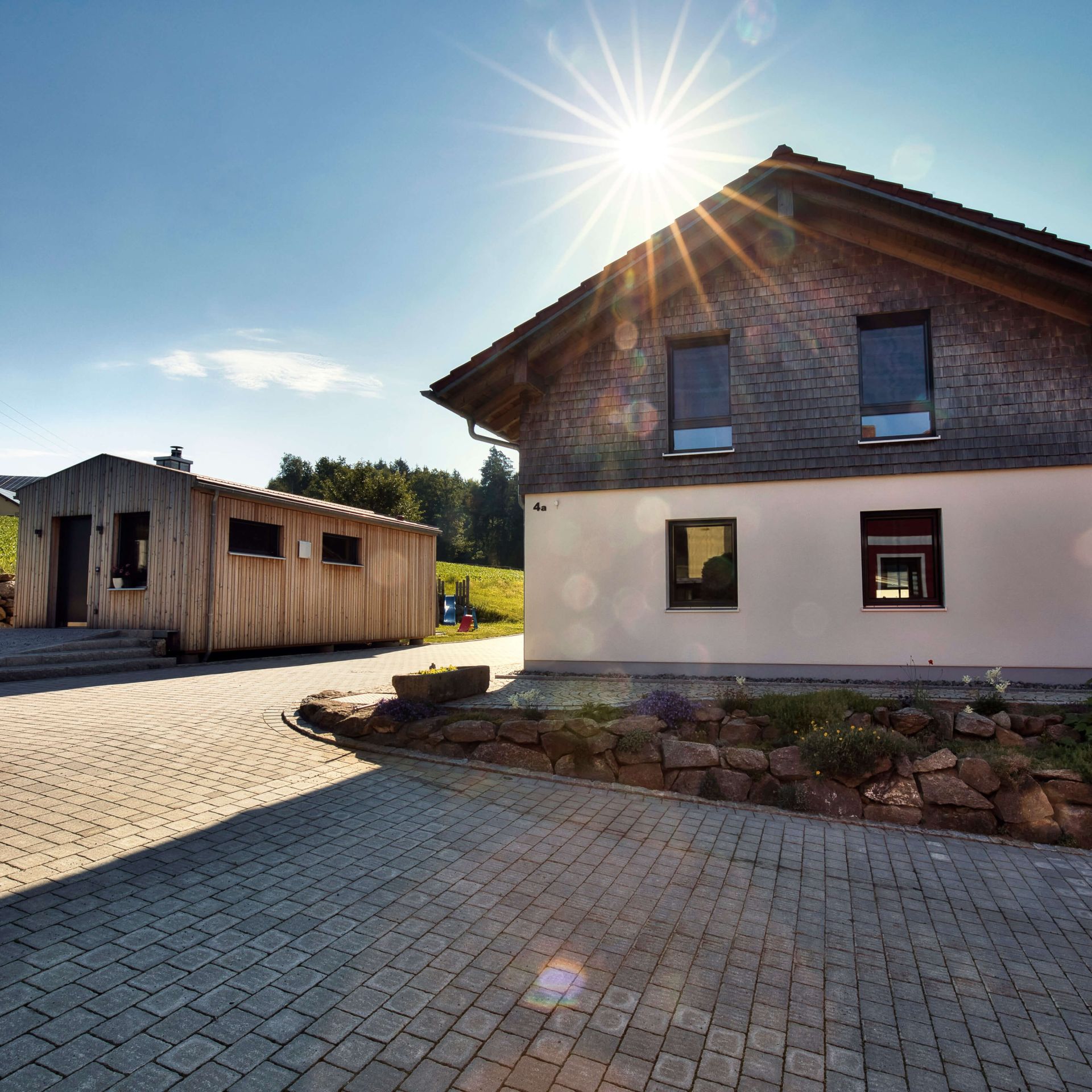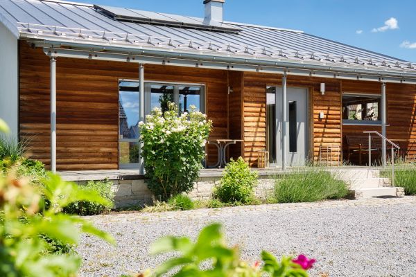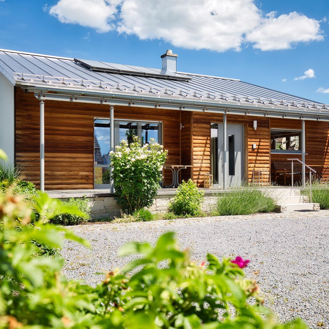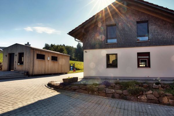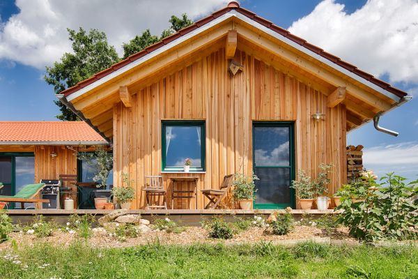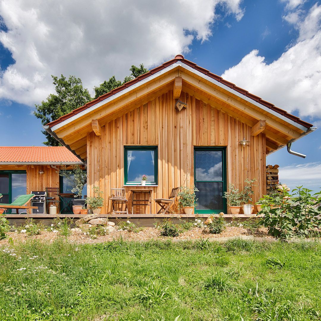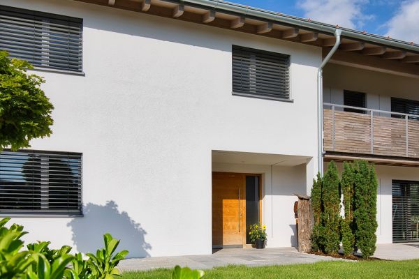 Bei uns im Bayerischen Wald werden die Häuser oft klassisch verputzt. Mit mineralischen Putzen auf Holzfaserplatten, die uns hier als Putzträgerplatten dienen, können wir die Außenhülle mit einem Putzsystem ausstatten und die regulierenden Eigenschaften eines Holzhauses bewahren.