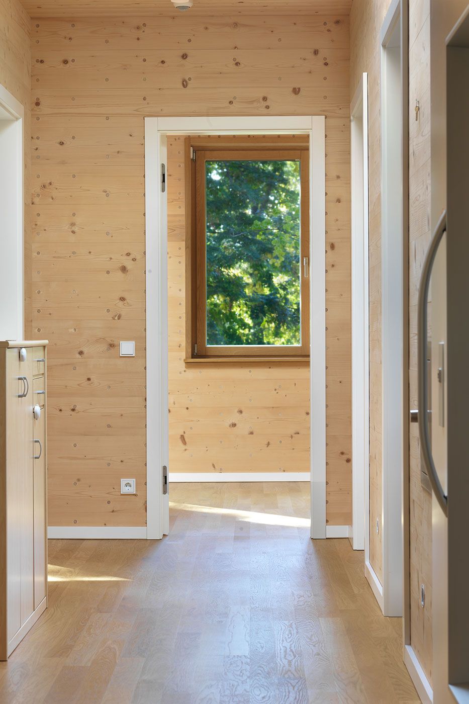 - 25 cm Thoma Holz100 Massivholzwand + 120 mm Holzfaser-Dämmung