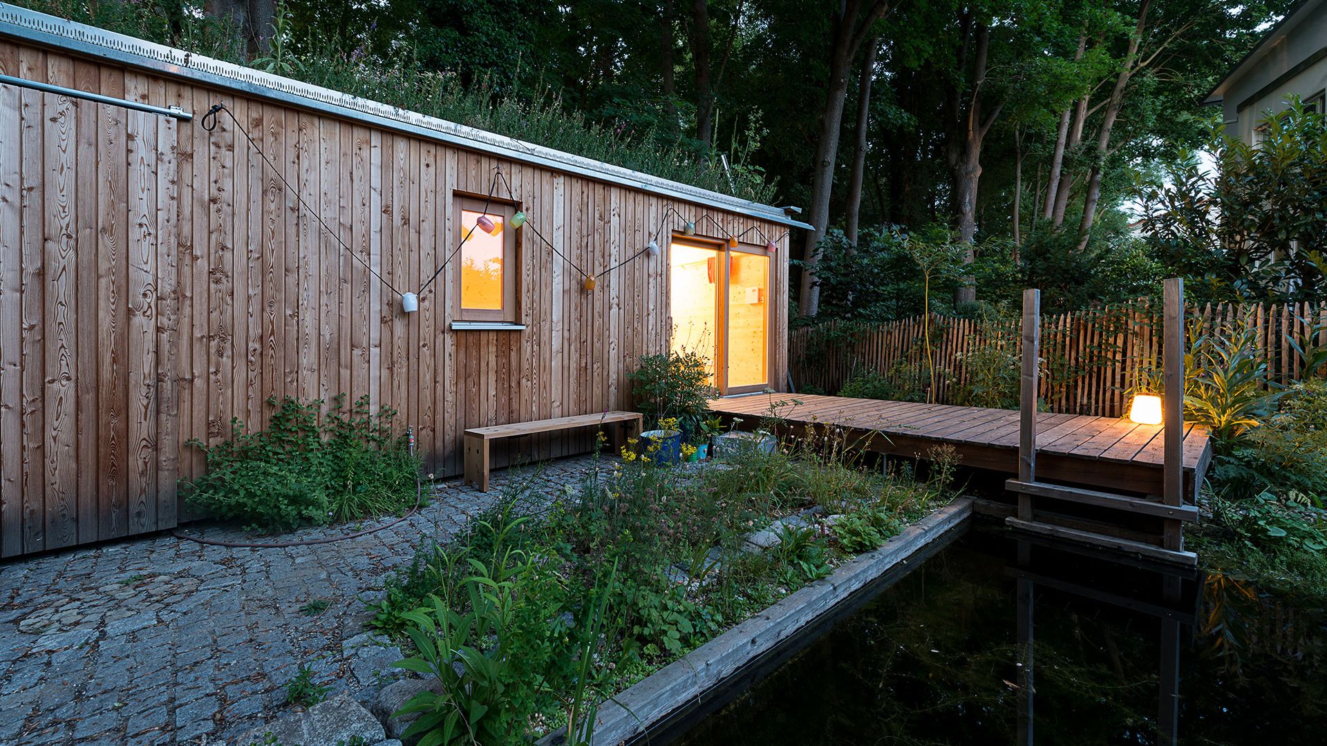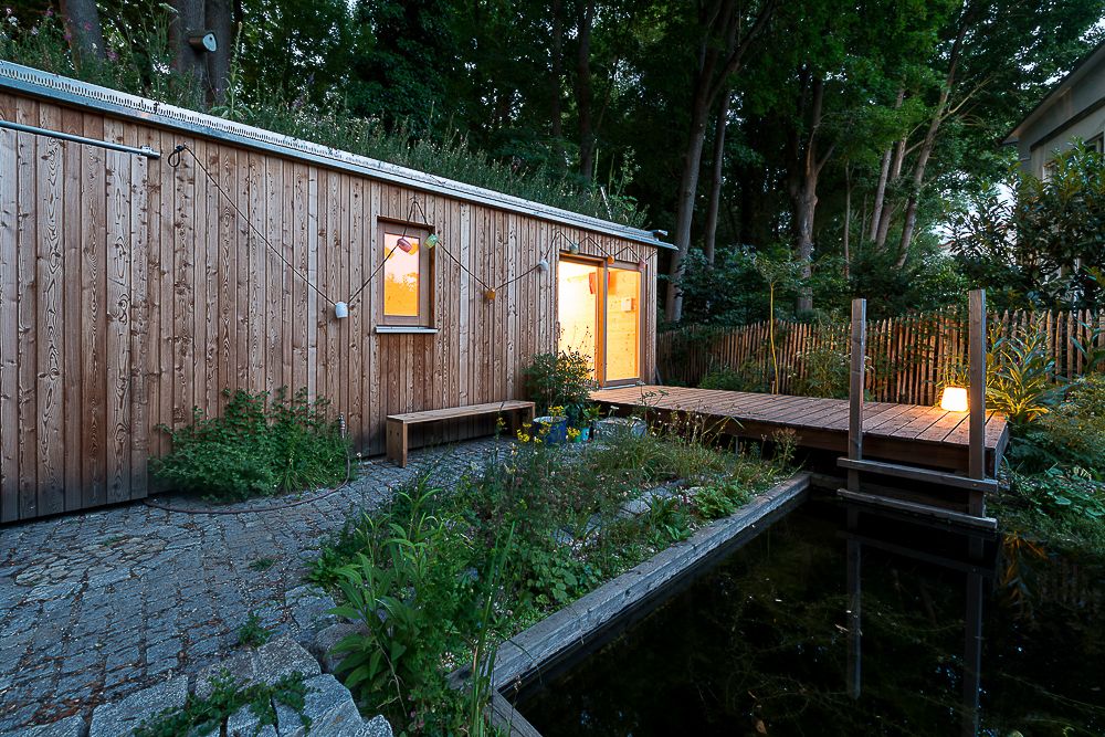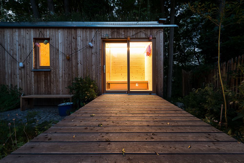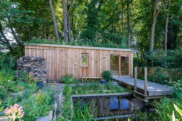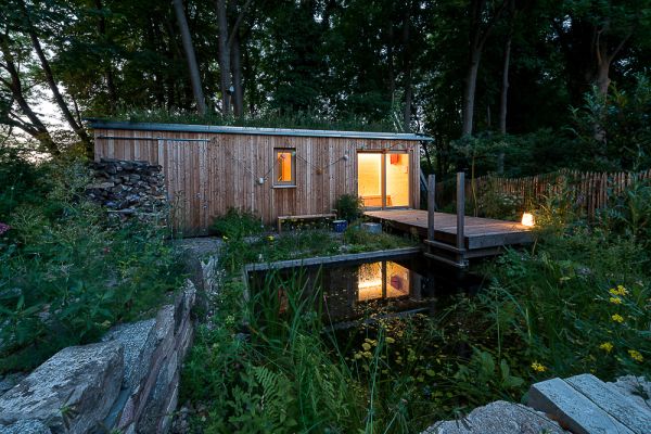 - Sauna mit Schuppen und Terrasse zum Schwimmteich